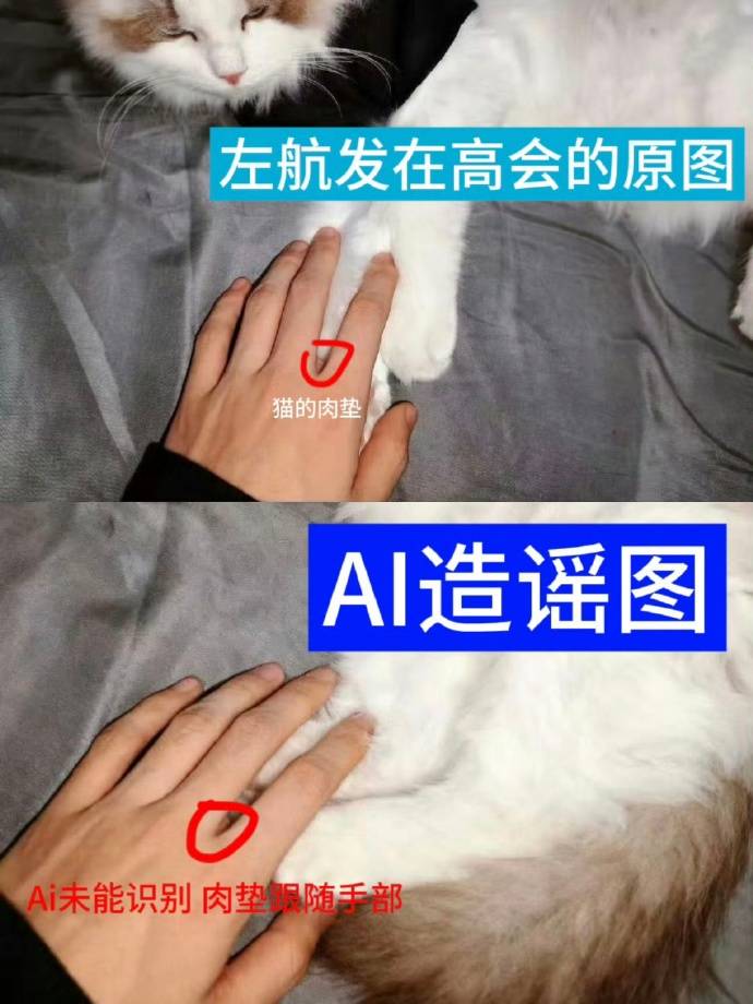 声明中将这波操作归结为“别有用心之人利用饭圈斗争恶意造谣引导舆论”。部分账号正是通过AI技术伪造了猫咪肉垫、手机摄像头黑点等细节,精心制造出看似实锤的“伪实证”,企图在信息混乱中引导舆论风向。
