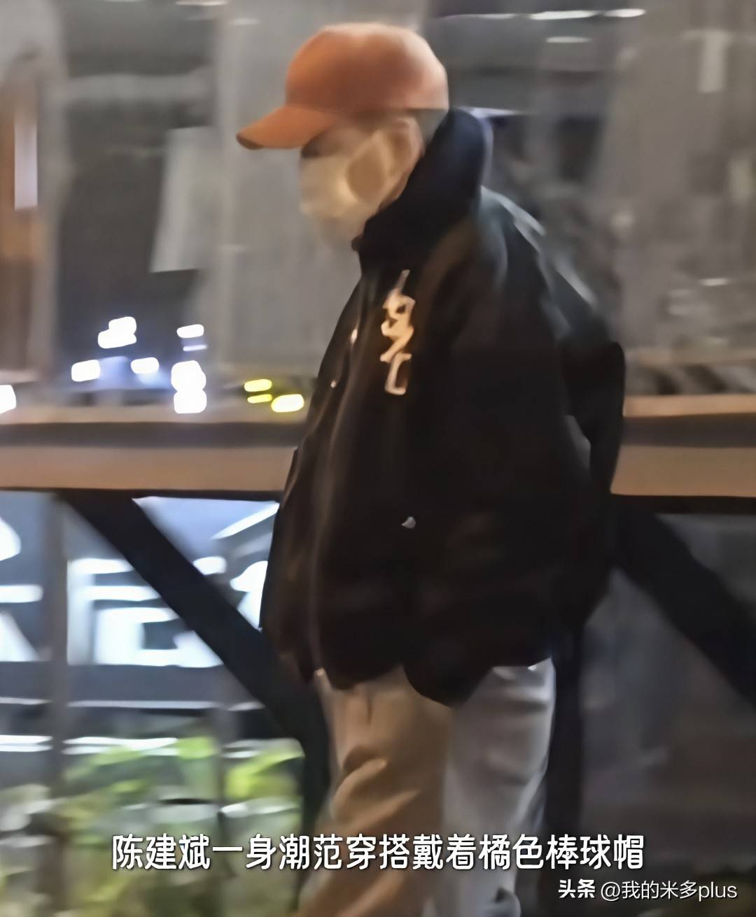 陈建斌平时多饰演沉稳甚至带有沧桑感的角色,外界以为他私下里会较为老气,没想到不拍戏时他的穿搭也很有潮流感。晚上出现时戴了一顶橘色棒球帽,格外显眼。上身黑色夹克搭配灰色宽松裤,整体松弛又不失时尚感。双手插兜走路的姿态,带着点潮男味道。