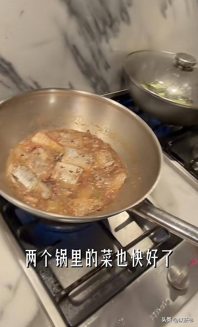 她熟练地一边炖着牛腩,一边在另一个灶台上炒着青菜,当锅里的红烧带鱼滋滋冒着香气时,她还能腾出手来给汤里撒一把葱花。
