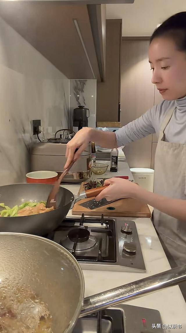 看到眼前的这一幕,谁又能想到,这位在灶台前娴熟颠勺的女性,二十年前曾是荧幕上那个“不食人间烟火”的“冷清秋”?