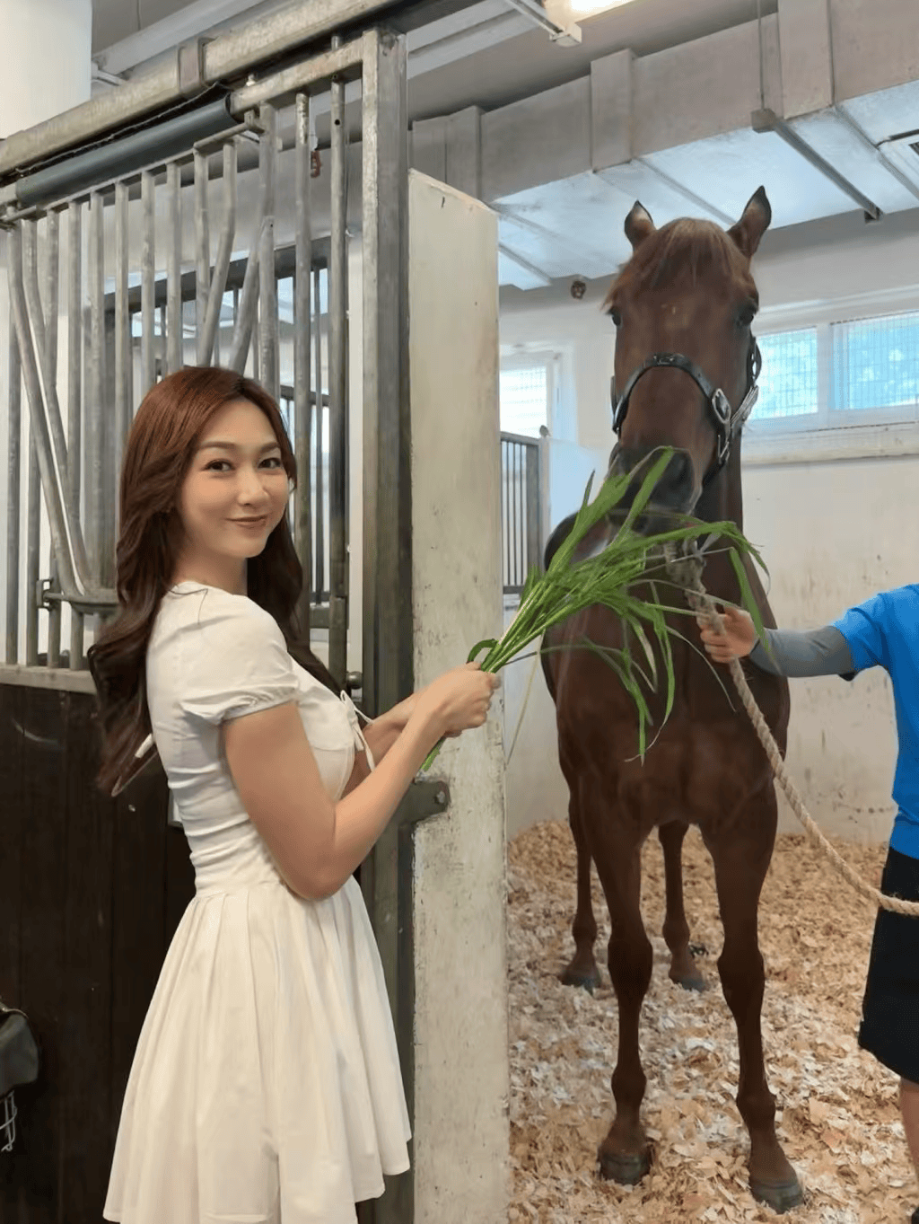 为了给马儿打气加油,黄嘉雯更是亲自到马场喂养马儿。她的爱驹取名为“飞马座”,看得出她对马儿的表现也是十分期待,恨不得比赛时能够有飞一般的速度应战。