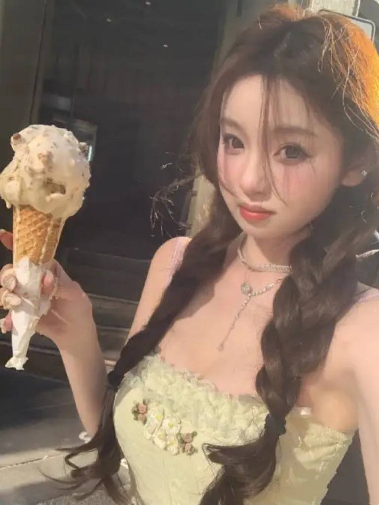 一个人吃冰淇淋,可可爱爱的模样,还是强装着微笑。懒懒真的很坚强,她暂时不想公开分手的消息,大概是心里还有一个念想,期待着王思聪会回心转意,以为自己还是最特殊的那一个。