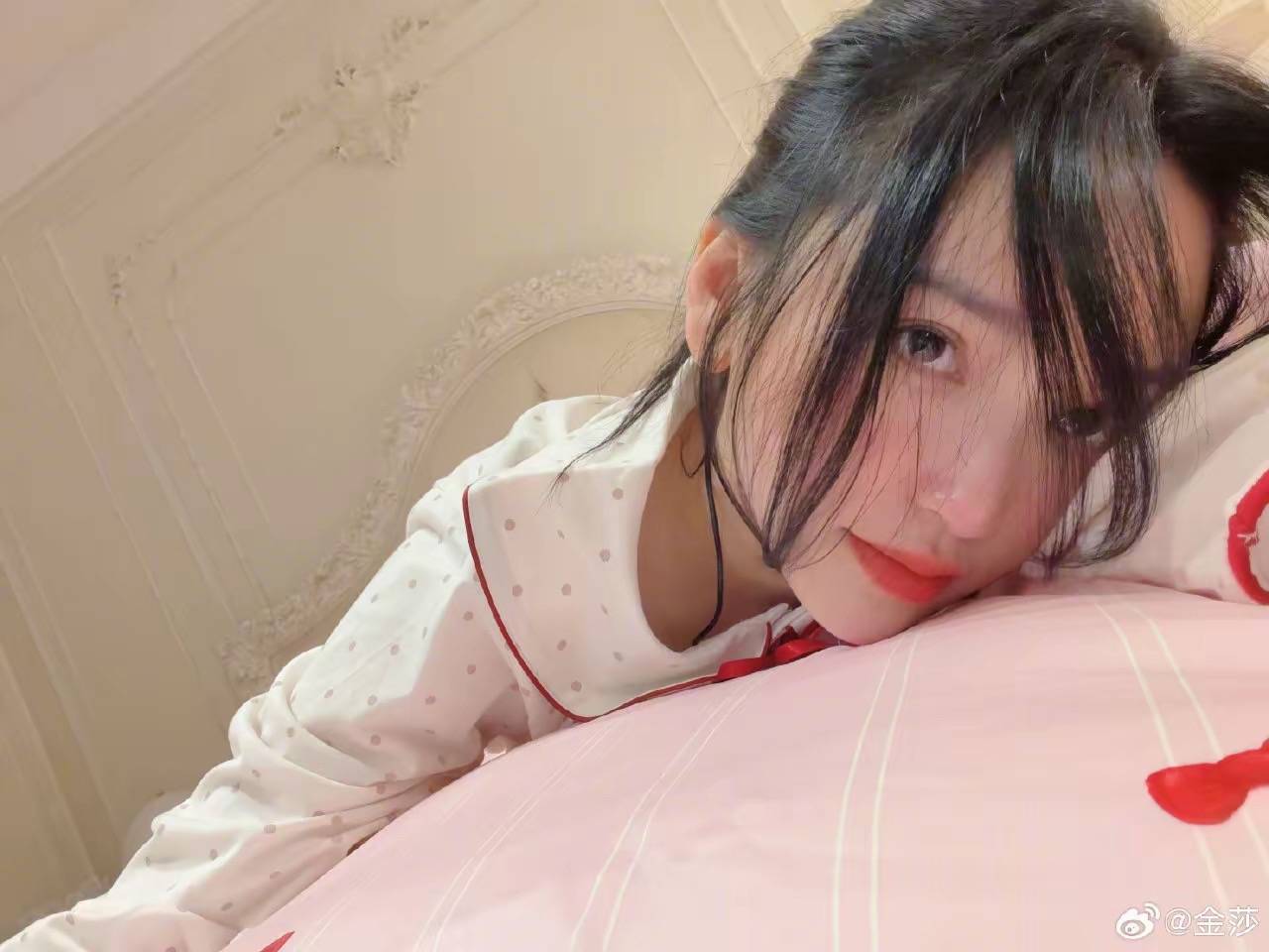 趴在床上拍照,这个角度像是男朋友视角。只能说孙丞潇眼里的金莎太可爱了,头发自然垂落形成了半遮面的效果,有一种朦胧神秘之美。