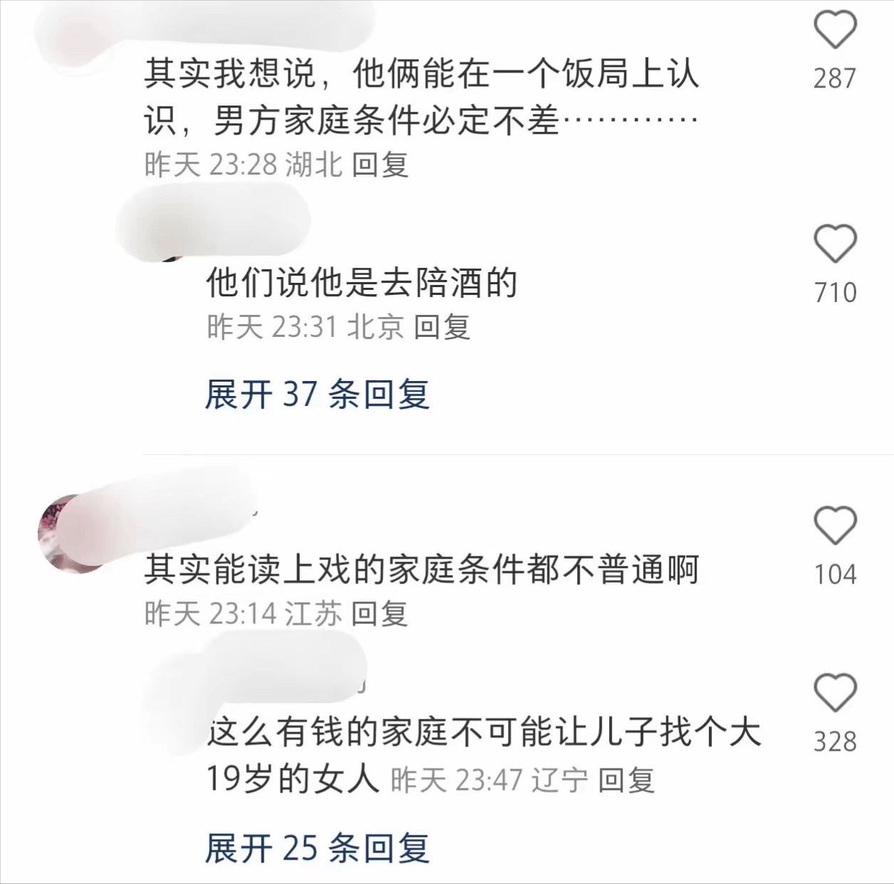 也有网友说,他俩能在一个饭局上认识,说明男方家庭的条件一定不会差。当然也有人表示,当时孙丞潇是去陪酒的。