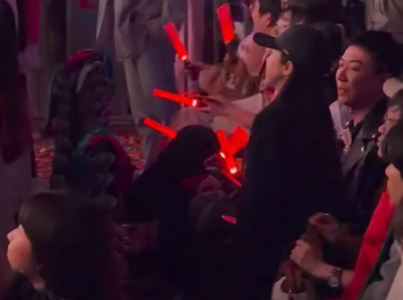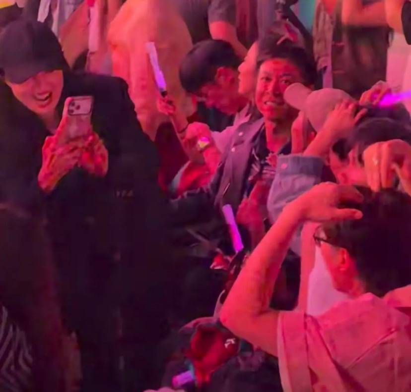 作为家属陪同的董璇,不仅在台下拼命挥动着荧光棒,还主动站起身子给张维伊的同事们拍照。只能说,董璇的情商也是无敌了。