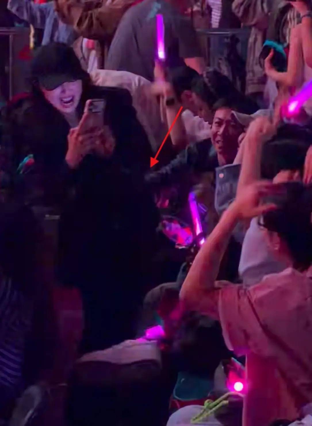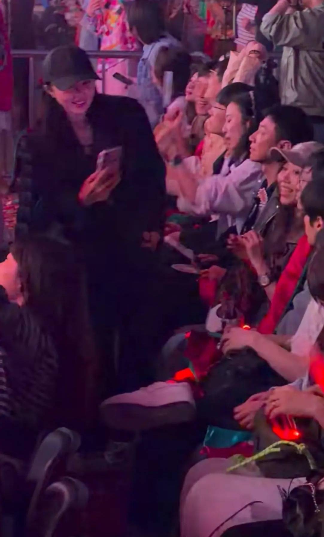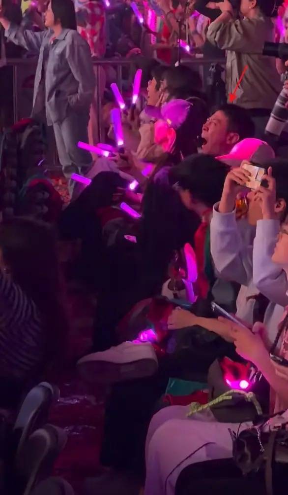 董璇玩的很开心,但是演唱会的看台都是一层一层的,如果不小心踩空了就会掉下去。张维伊的眼睛时刻盯着老婆,生怕老婆站不稳。