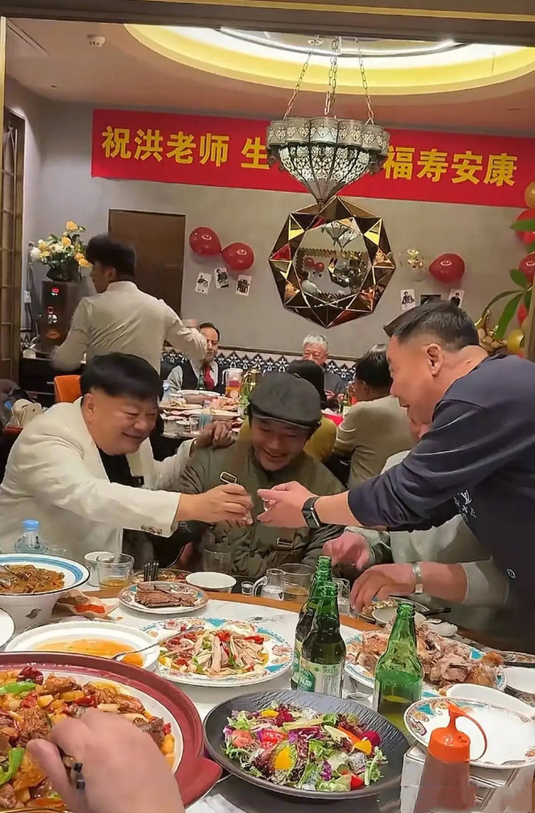 最后的大合影里,大家“祝洪爷生日快乐”。这样的庆生场面真是太震撼了,亲朋好友在侧、有祝福有陪伴。