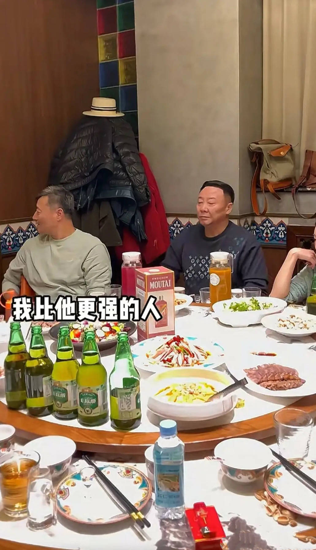 虽然不是很高档的餐厅,但是餐桌上都是硬菜。不仅有自己带的茅台酒、还摆了几瓶啤酒,以及花茶。