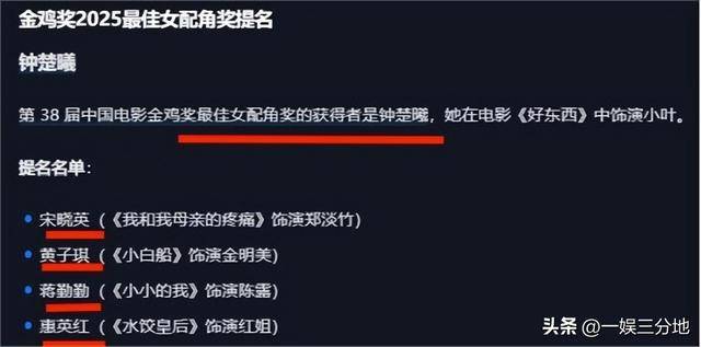 首先是获得了最佳女配角的钟楚曦,同期提名的有宋晓英,黄子琪,蒋勤勤以及惠英红,简直是一众前辈陪跑新人,心疼他们三秒。