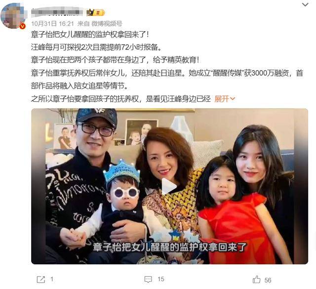 2023年,汪峰和章子怡离婚。当时狗仔爆出来的消息是抚养权一人一个,9岁的女儿醒醒跟汪峰,5岁的儿子跟着章子怡。