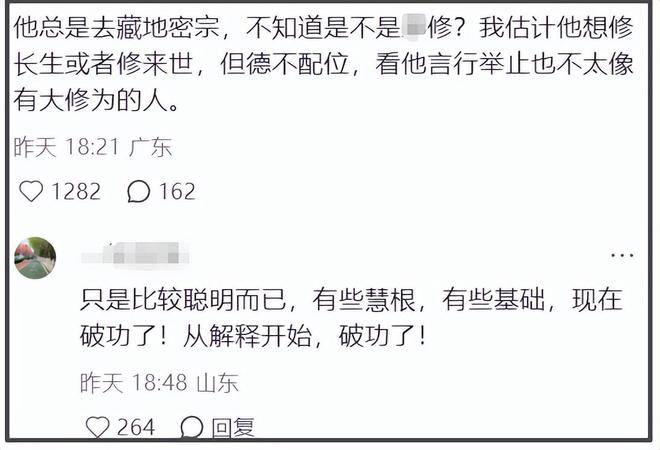 还有人说李连杰总是去藏地密宗,但言行举止却没有修行之人的稳重,面对外界的质疑也不够淡定,“从解释开始,破功了”。的确,这些年李连杰确实很少比较正式的出现在荧屏前,大部分时间都在藏地进行修行活动。