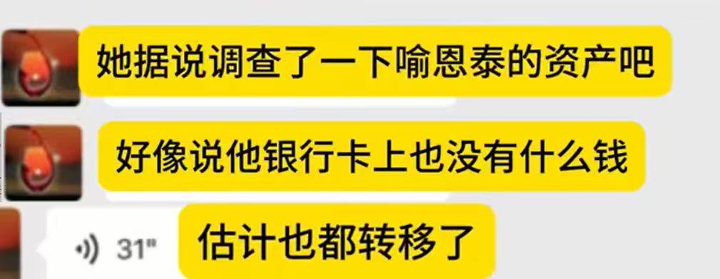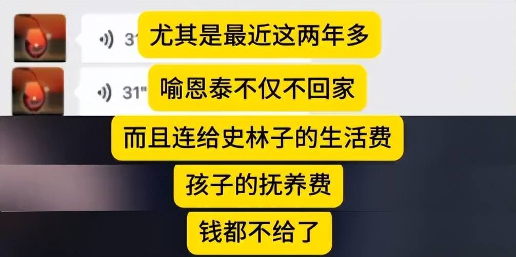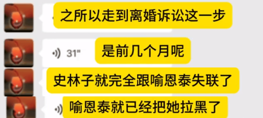 有狗仔晒出和卓伟的聊天记录,爆料《武林外传》主演喻恩泰闹婚变,据卓伟所说,喻恩泰从口罩开始就不太回家了,尤其最近两三年,不仅不回家还失联拉黑女方,不给生活费,连孩子的抚养费都不给了,逼妻子史林子离婚,女方无奈只能提起离婚诉讼。