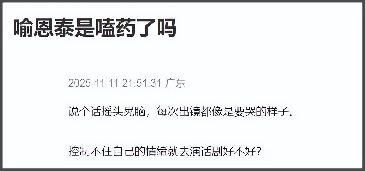 除此之外,喻恩泰近几年的演技也被网友吐槽,甚至有网友怀疑他精神状态,为什么演个戏肢体动作夸张得像失常了一样。