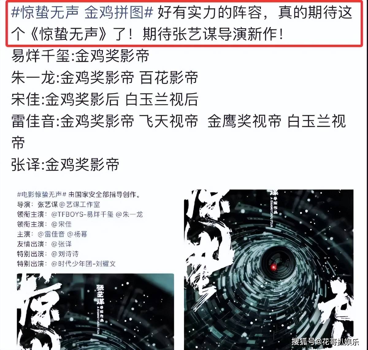 这边宋佳深陷舆论泥潭,那边张艺谋执导的《惊蛰无声》却借着金鸡奖的热度疯狂营销。影片专门打造了“金鸡拼图”的热搜词条,高调宣传电影阵容超强,班底无敌,四位金鸡影帝和一位金鸡影后加盟,试图借着奖项东风收割一波关注度。但明眼人都能看出,这背后的利益链条实在太过明显。