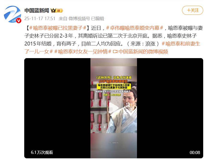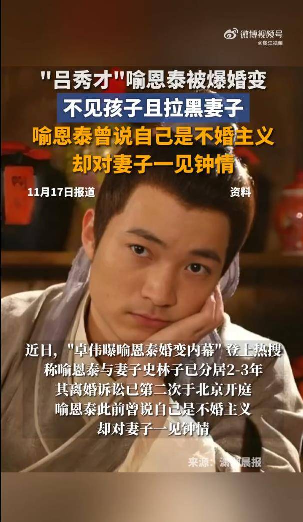 11月17日,一则“卓伟曝喻恩泰婚变内幕”的消息空降热搜,瞬间点燃了吃瓜群众的八卦魂。这位昔日荧幕上满口“子曾经曰过”的吕秀才,现实中却被指上演了一