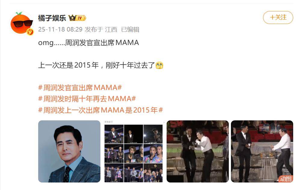 从2015年为BIGBANG颁奖引发全场尖叫,到2025年重返同一舞台,周润发的每一次现身,都不只是“颁奖”那么简单。他代表的,是港式幽默与韩流文化的一次次高光碰撞。十年过去,舞台从异地搬到香港主场,当“发哥”再度遇上K-pop,这场跨越文化与年代的精彩互动,无疑已成为本届MAMA的最大看点之一。