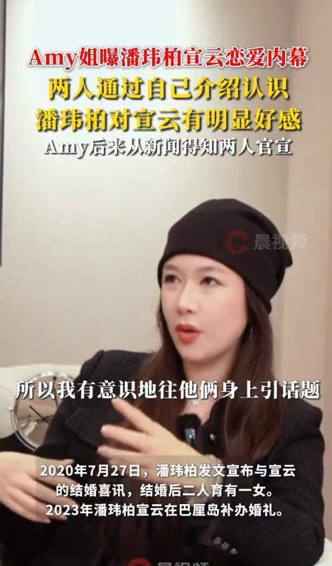 11月17日,网红“Amy姐”一则视频再度将潘玮柏与宣云的婚姻推上风口浪尖。镜头前,她以“牵线人”身份剖白:当年宣云通过她结识潘玮柏,主动坦言对男方的欣赏