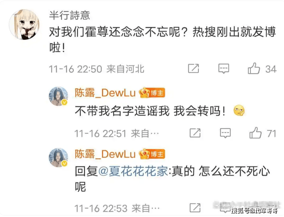 面对这场突如其来的热度,陈露在评论区毫不掩饰对霍尊的反感,直言 "这个渣男一直造谣我进去了,还不死心,各种买热搜"。