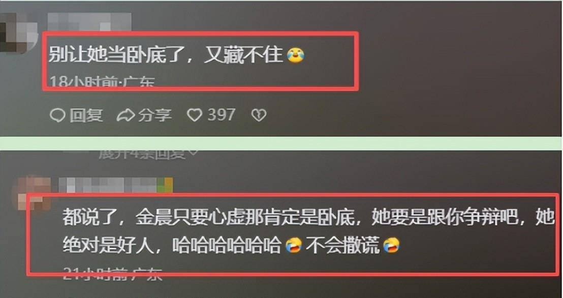 有网友调侃说:“别再让她当卧底了,根本藏不住啥。”