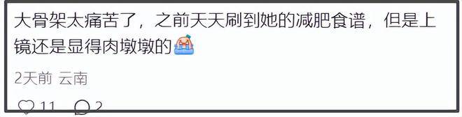 网友理解关晓彤的不易,明明经常刷到她的减肥食谱,可是上镜还是显得肉嘟嘟的。说到底是因为骨架太大,体脂率太高。