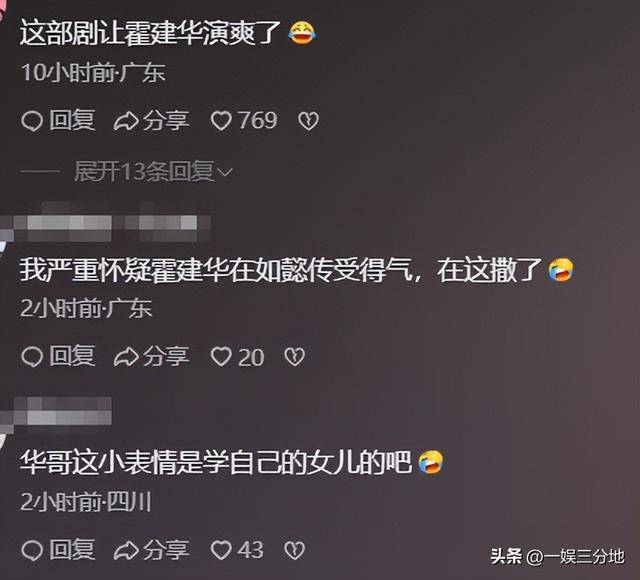 网友看了霍建华在剧中放飞自我的状态,也是感慨他在这部剧里演爽了。