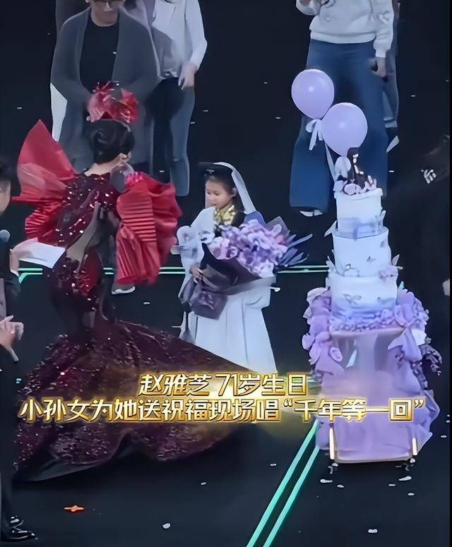 赵雅芝小孙女穿着迷你版白娘子戏服,奶声奶气唱《千年等一回》,赵雅芝蹲下来给她擦汗,眼里全是泪:“奶奶的宝贝真棒!”