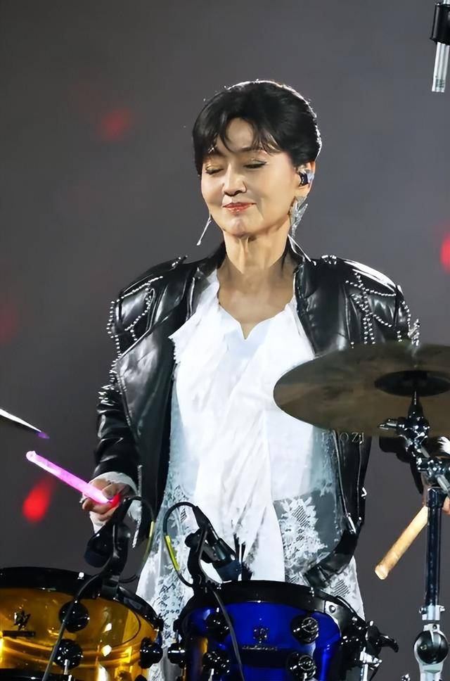 如今72岁的她则展现出飒爽活力,在舞台上玩转架子鼓、跳扫腿舞,被网友风趣地称为“摇滚奶奶”。