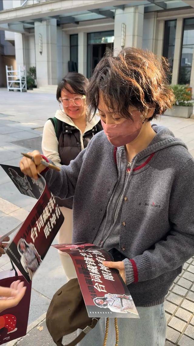 近日也有不少粉丝在话剧院外蹲到了海清,只为能要到“女神”的亲笔签名。
