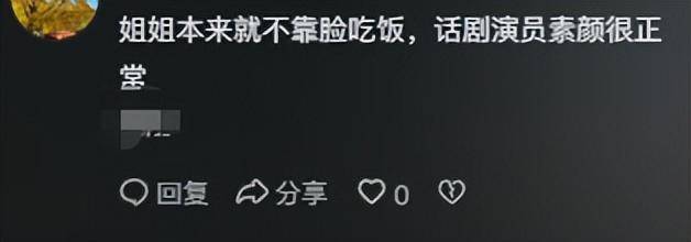 不过也有粉丝力挺:“姐姐本来就不靠脸吃饭,话剧演员素颜很正常!”