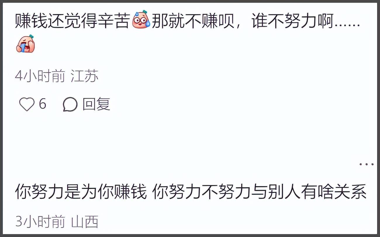 但没想到这一番话却遭到网友吐槽,本来网友前几年被教育“是不是不够努力”就够烦的了,马筱梅这边又卖惨说自己很努力,网友直言,你努力不是为了自己赚钱?
