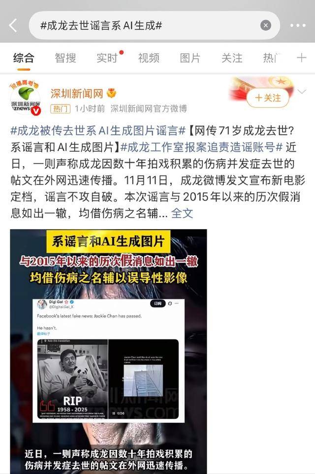 可随着AI技术的发展,成龙大哥竟然被传出了“去世”的消息,真是离谱他妈给离谱开门——离谱到家了!