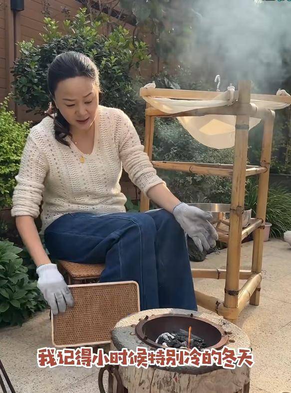 戴好手套之后,王一楠就开始往煤炉里面添加炭火,这模样跟农村大妈做饭真没啥区别,不得不说,王一楠是真的太接地气了。