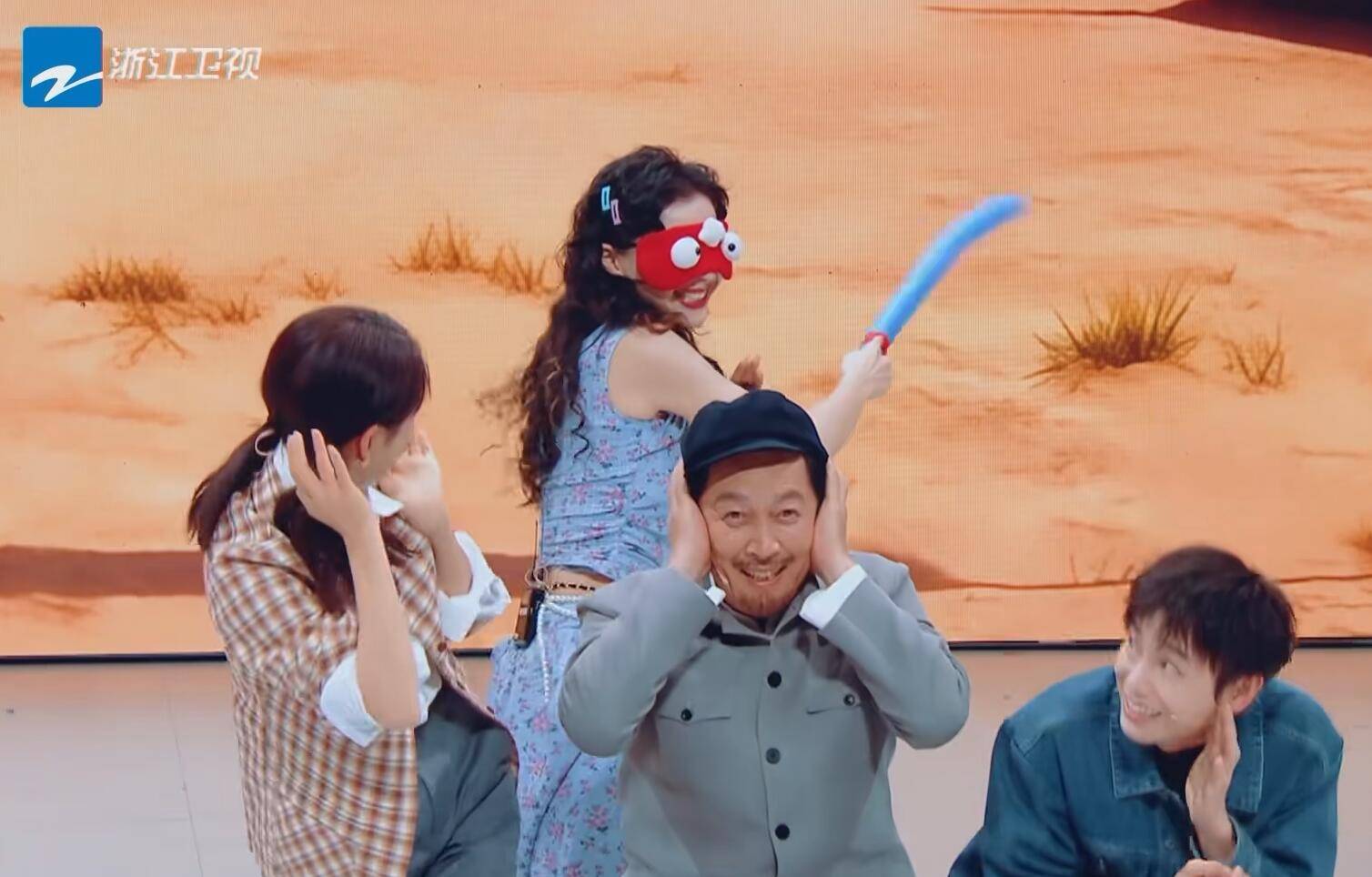 在游戏开始之后,唐国强因为没坐稳差点摔倒,吓得所有人赶紧去扶。