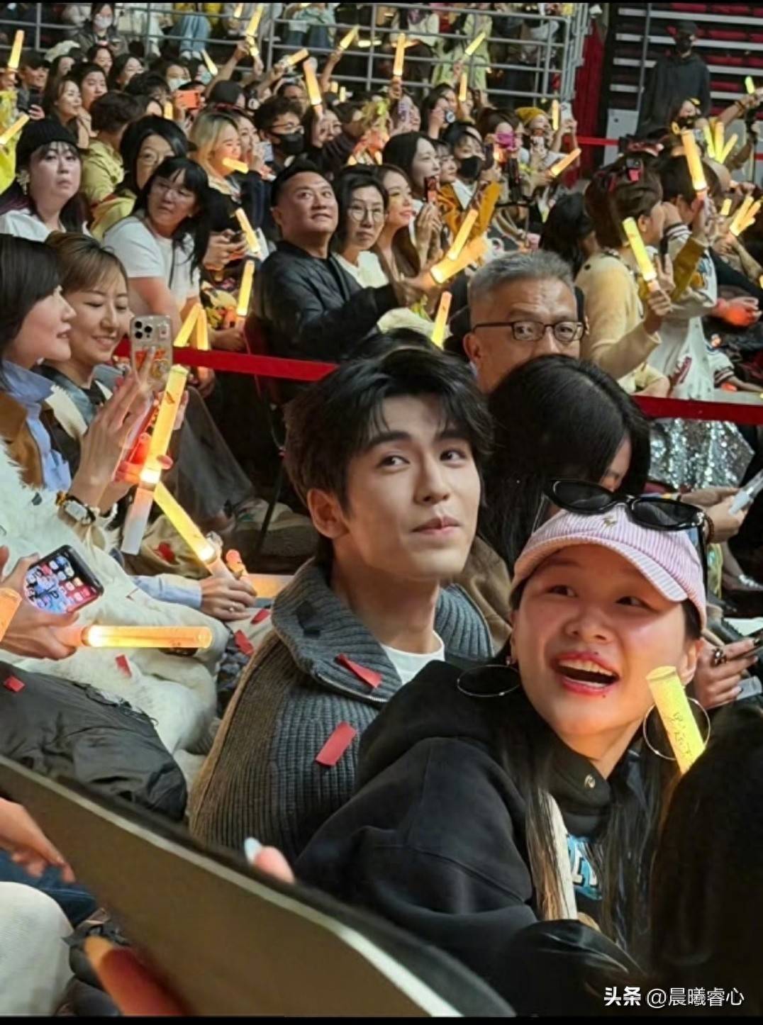 现场,刘宇宁深情开嗓,观众席中的张凌赫变身迷弟,手持手机记录着《寻一个你》的精彩瞬间,侧脸在灯光下帅气无比,镜头捕捉到他腼腆的比心动作,显得格外可爱。金靖则穿着显眼的包本包,扎着高马尾,跳跃着跟唱,兴奋到差点把帽子甩飞,张凌赫笑着帮她扶住,三人的互动自然又默契。让人意外的是,刘宇宁在台上当众透露:“凌赫一大早从横店赶过来,明早还得飞回去”,这1400多公里、5小时的高铁路程,张凌赫顶着连轴拍戏的疲劳赶来,展现了他“为兄弟赴汤蹈火”的真挚友情,感动了不少网友。