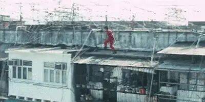 在房顶上滚来滚去,她说上就上,腿骨骨折后也坚持拍摄上半身的动作,直到被送到医院。