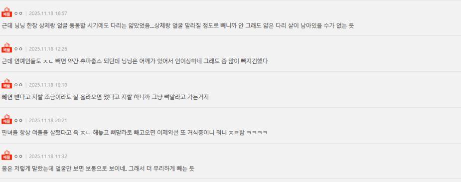 而更多的声音,则指向了对偶像产业畸形审美规则的讽刺与反思。一针见血的评论道破了行业的残酷现实:“艺人减重要挨骂,稍微长点肉又被嘲发福——难怪最后都瘦成纸片人。”另一条评论则犀利戳破了网络舆论的双标:“论坛网友总diss女偶像‘变胖’,等她们瘦身回归又突然指责人家进食障碍,实在可笑。”更有粉丝流露出担忧:“身形已经这么单薄了,看脸蛋却还算正常…这恐怕会促使她继续减重。”