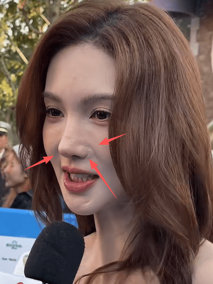细看会发现,金晨鼻头发红、鼻翼仿佛少了一块肉,网友一眼就注意到疑似上切的痕迹,周围还有一圈半圆形印子——有种工程很浩大的感觉呢。