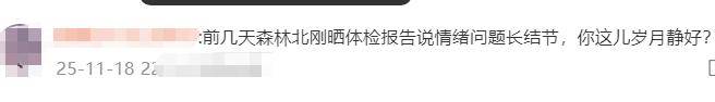 “前几天森林北刚晒体检报告说情绪问题长结节,你这儿岁月静好?”