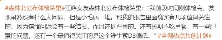 近日,森林北在个人账号分享了自己的体检报告。