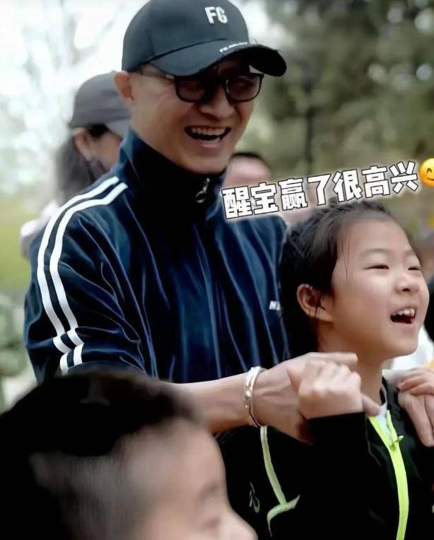 照片里他穿着冲锋衣戴着棒球帽,帮女儿背书包时还弯腰听她说话。