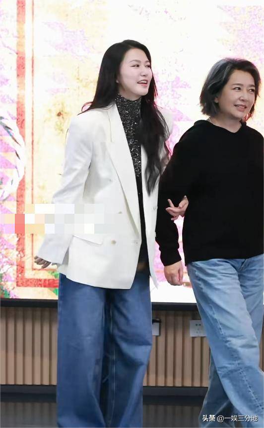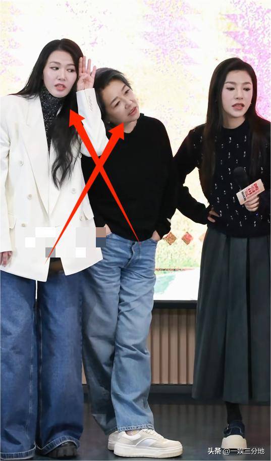 和江珊站在一起一对比显得更不自然了,可能是没有老态的样子吧,四十三岁也算是半辈子过去了,结果脸还是很紧绷,还有点水光肌的感觉。