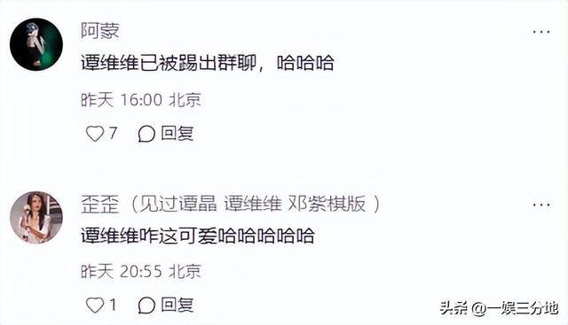 谭维维被推开后,网友的评价也好好笑,说:“谭维维已经被踢出群聊。”