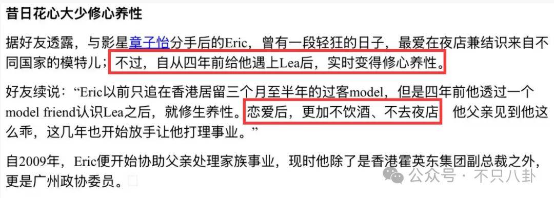 港媒称霍启山的奶奶吕燕妮不接受外籍女子嫁入霍家,同时也对Lea内衣模特的工作性质有所顾虑。在霍家明确的反对下,霍启山与Lea分手。