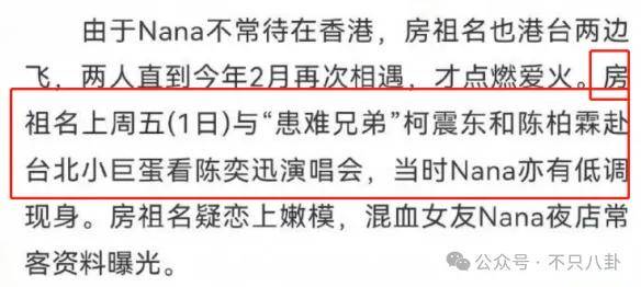 2016年,房祖名被曝恋上才19岁的混血模特Nana,港媒称两人2015年9月相识于一家香港夜店,房祖名对Nana一见钟情,要了她的联系方式。