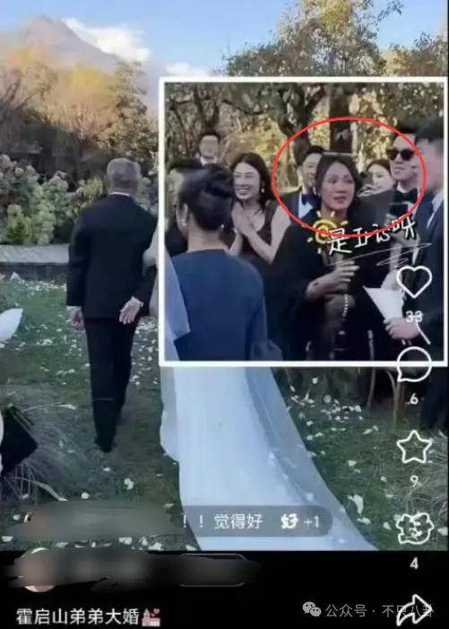 受邀参加婚礼的亲朋好友都没有发过宾客照片,但火眼金睛的网友还是从一闪而过的镜头里,发现了霍启山。