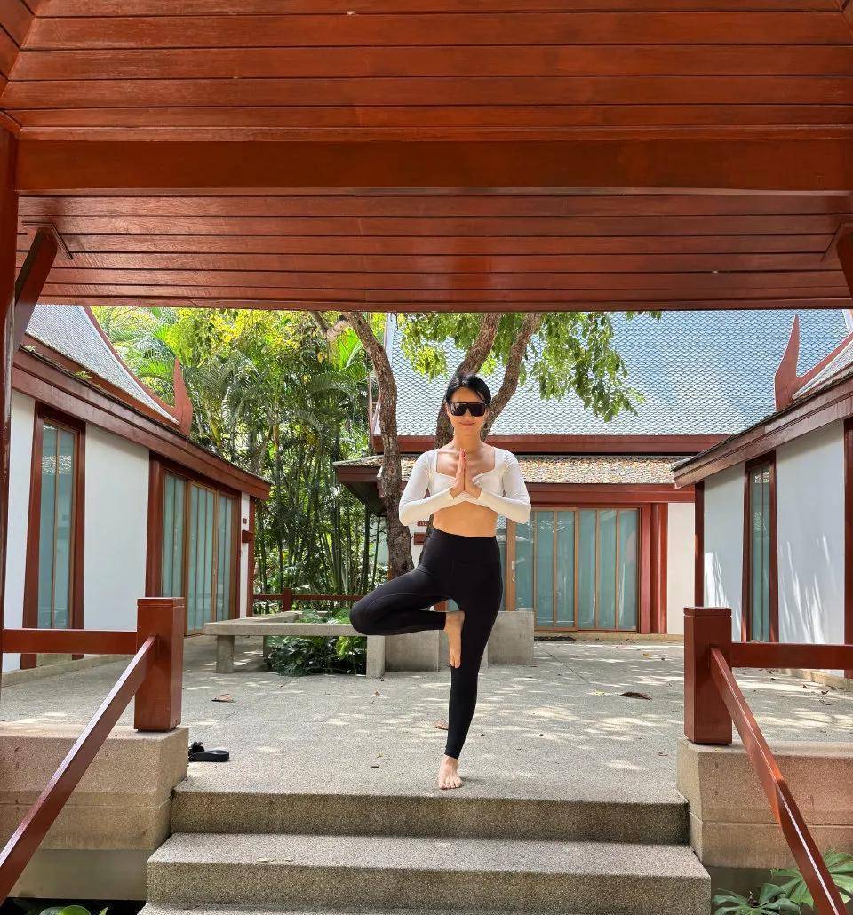 不过她也发了一张做瑜伽的照片。穿着运动背心和瑜伽裤,虽然腰腹部看起来确实比以前圆润了些,但她还能稳稳地单脚站立。这么看来,可能就像她自己说的,只是最近吃多了长胖了点,不一定真的是怀孕。
