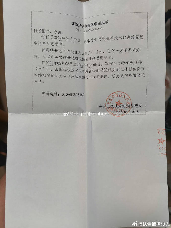 徐璐的发文堪称“雷神之锤”,不仅文字控诉,更直接晒出离婚证和回执单,时间线清晰得让人无从反驳——2022年4月初,她通过行车记录仪录音实锤前夫付殷正洋与史林子的婚外情,录音中男方一句“行车记录仪怕我看到所以删了”堪称自爆,史林子则被指在对话中默认。四天后(4月7日),两人火速离婚。