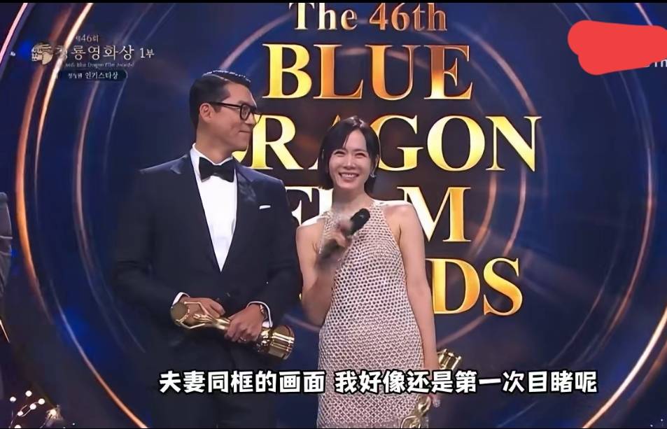 主持人也不想放过两个人,连连感叹这是韩国青龙奖电影史上第一次真夫妻同时拿下影帝影后桂冠。