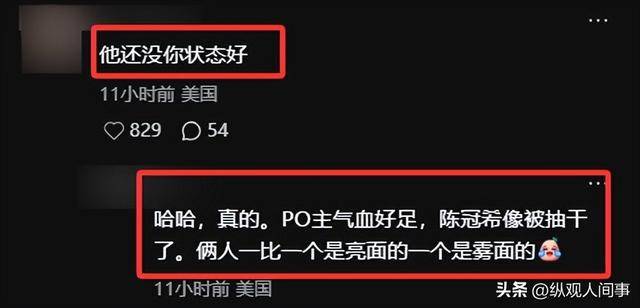 因为博主看起来都要比陈冠希年轻,毕竟珠光水润的,再看陈冠希,脸皮都起褶子了。
