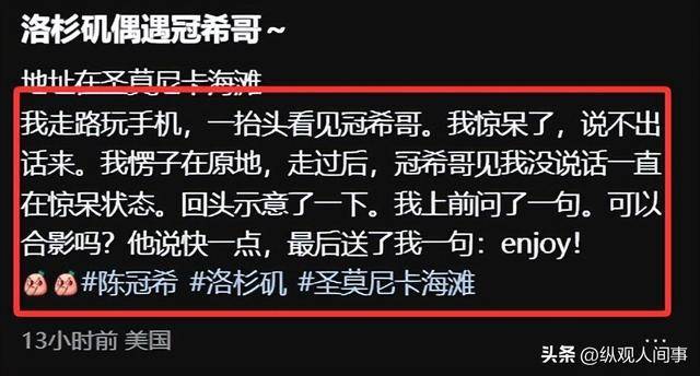 然而,和预想中的高调不同,陈冠希在看到博主惊呆的样子之后,他立刻就明白了他是自己的粉丝,所以就直接示意了一下,博主说想合影,他也立刻就答应了。